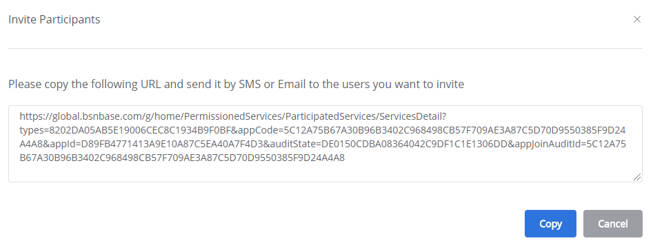 Click Copy to copy the link details. This can be emailed to the participants who login with their BSN credentials to join or register with BSN first to use the service.